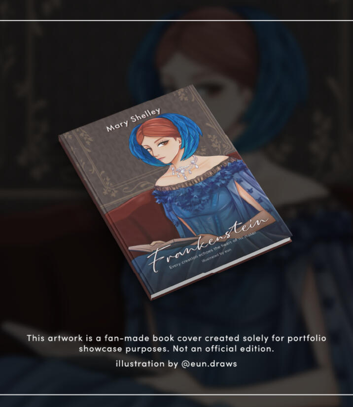 A fanart book cover illustration I did based on the movie Frankenstein. I tried to draw one of the characters in my style.